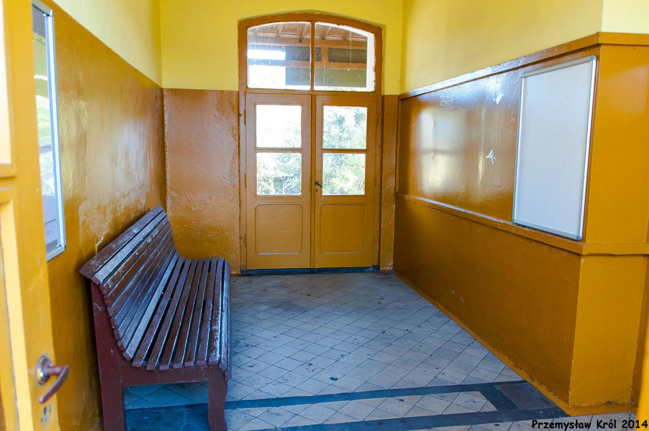 Wnętrze małego dworca kolejowego udostępnione podróżnym.
