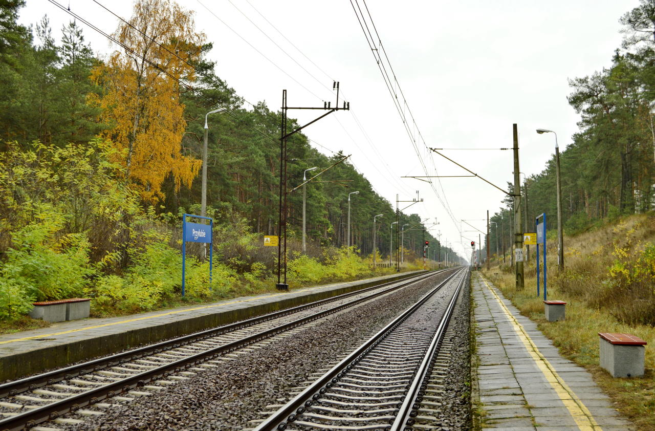 Przystanek Przyłubie. Widok na peron 1.Że też pociag musiał się tak blisko zatrzymać!