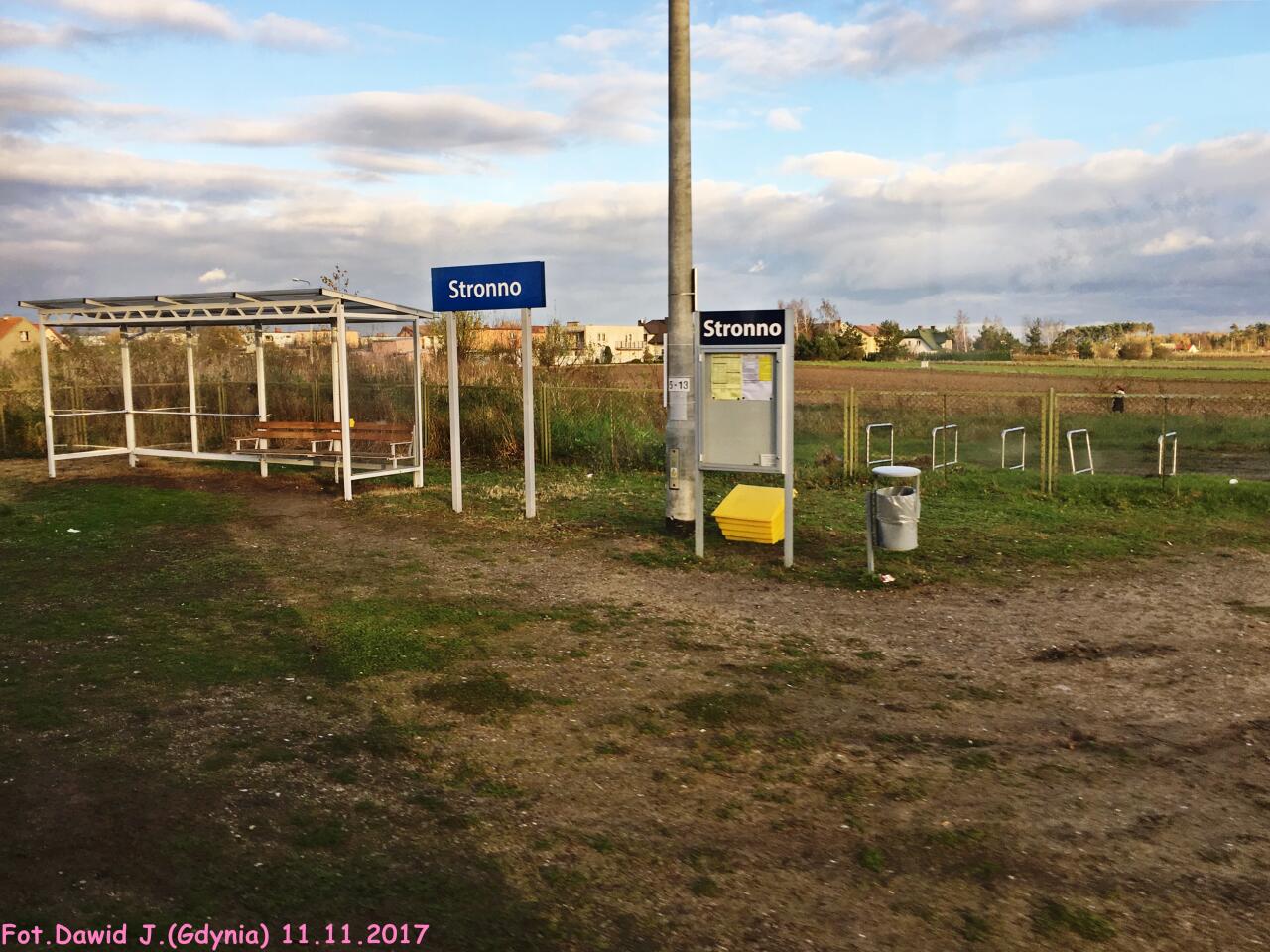 Dworzec Stronno. W lewo Wierzchucin, w prawo Maksymilianowo/Bydgoszcz.