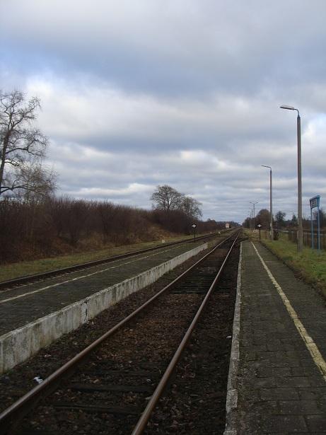 Widok na koniec peronów w kierunku Maksymilianowa/Bydgoszczy. W tle jeden z semaforów wyjazdowych.
