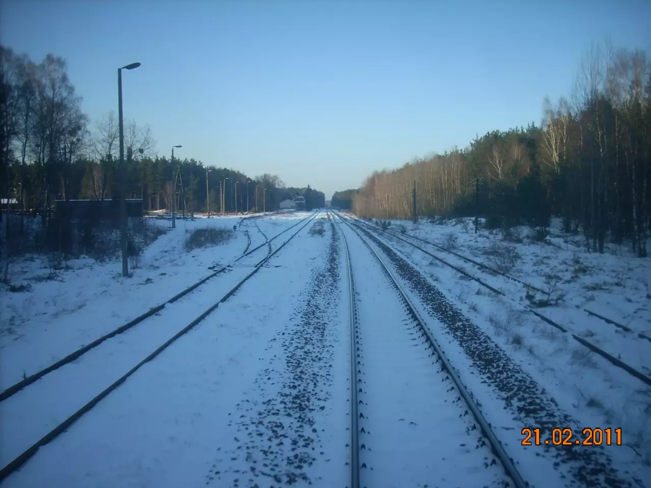 Rozjazd od strony Wierzchucina, w tle semafory wyjazdowe w kierunku Wierzchucina. Widok w kierunku Serocka.