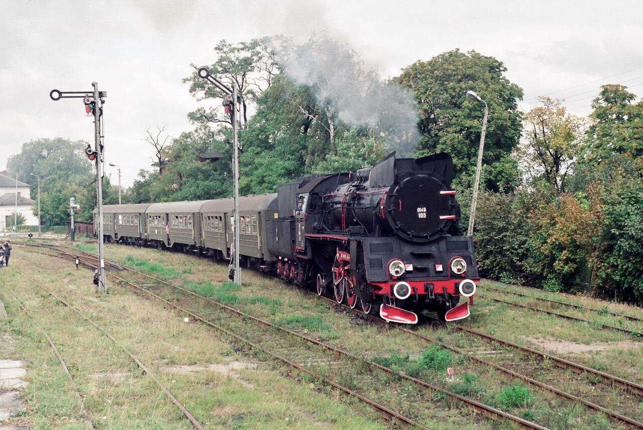 Wjazd pociągu specjalnego Poznań - Czempiń - Jarocin - Poznań z Ol49-105. Widok w kierunku zachodnim (Czempiń).