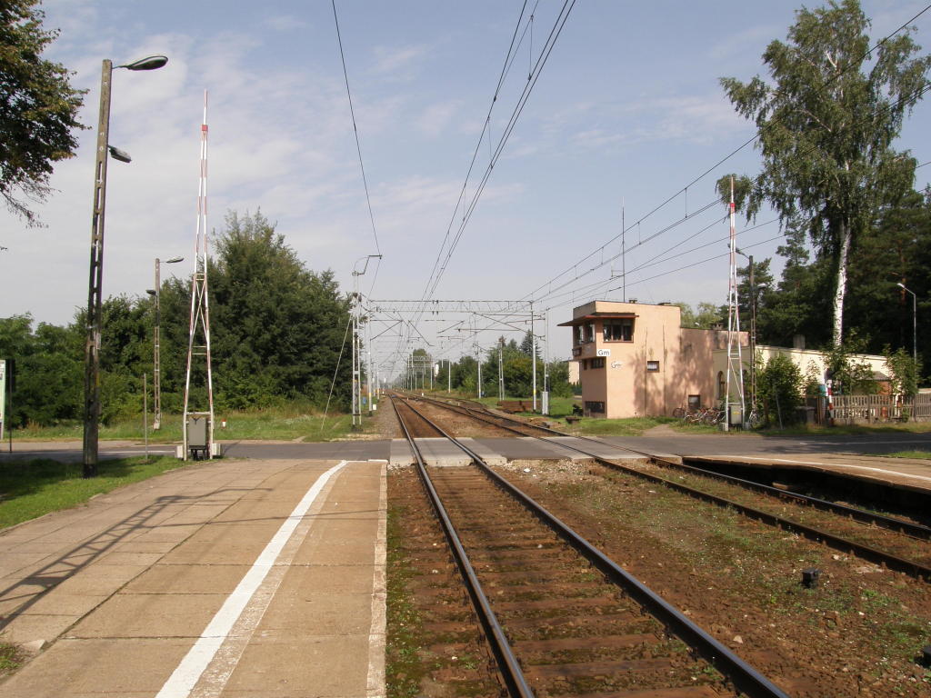 Południowa głowica rozjazdowa; wyjazd na Radomsko. Jedyna na stacji nastawnia Gm. W lewo Piotrków Trybunalski, w prawo Radomsko. 177,6 km.