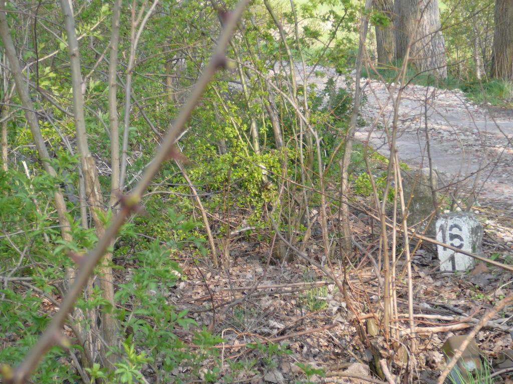 Książ Wielkopolski. Słupek kilometrowy w sąsiedztwie wieży wodnej.