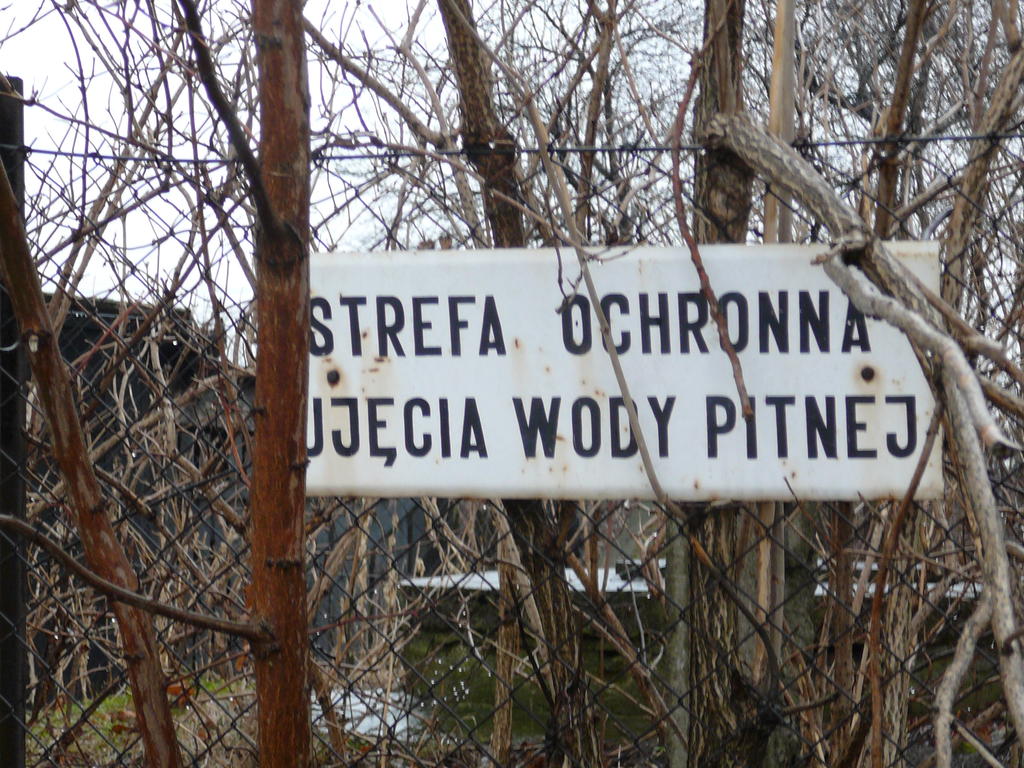 Książ Wielkopolski. Obok wieży wodnej nadal wiszą tabliczki nieaktualne od lat.