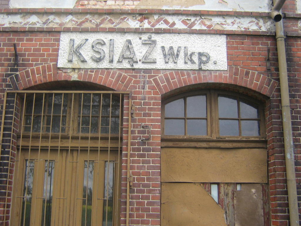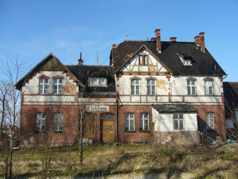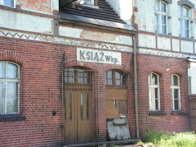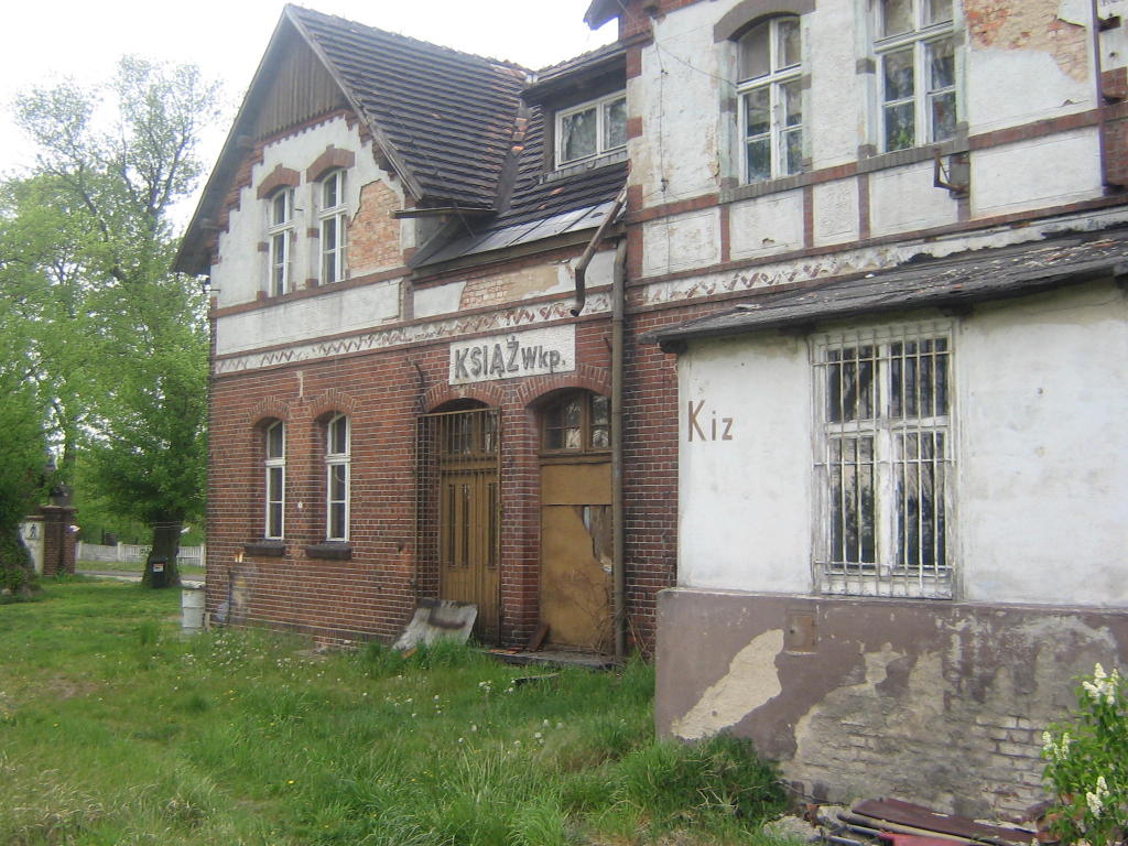 Stacja Książ Wielkopolski, budynek dworca. W lewo Czempiń, w prawo Mieszków.