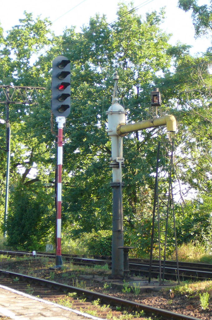 Żuraw wodny i jeden z semaforów wyjazdowych do Krotoszyna. Widok w kierunku północno-wschodnim.