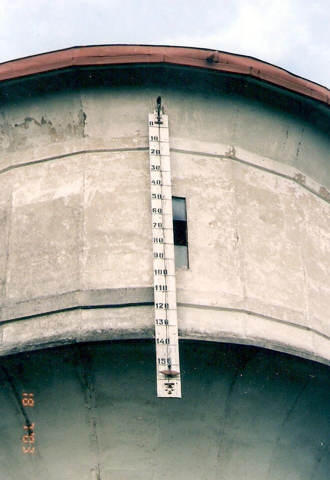 Grabowno Wielkie. Wskaźnik poziomu wody w zbiorniku wieży wodnej.