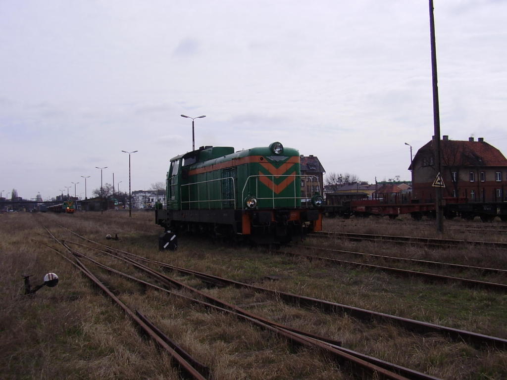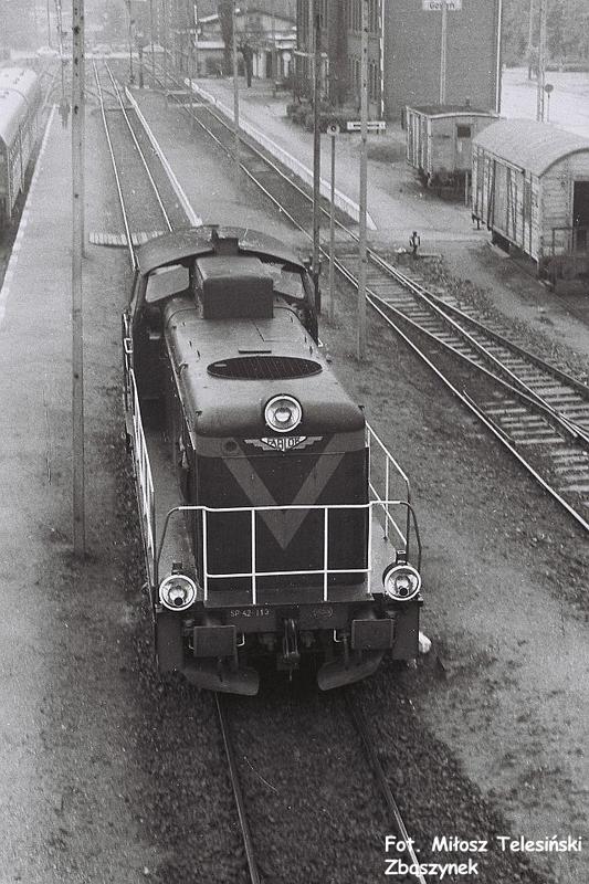 SM42 podczas manewrów na zachodniej głowicy stacji, w pobliżu nastawni wykonawczej Gs1, od strony wjazdu z Kąkolewa/Leszna. Widok w kierunku wschodnim (perony).