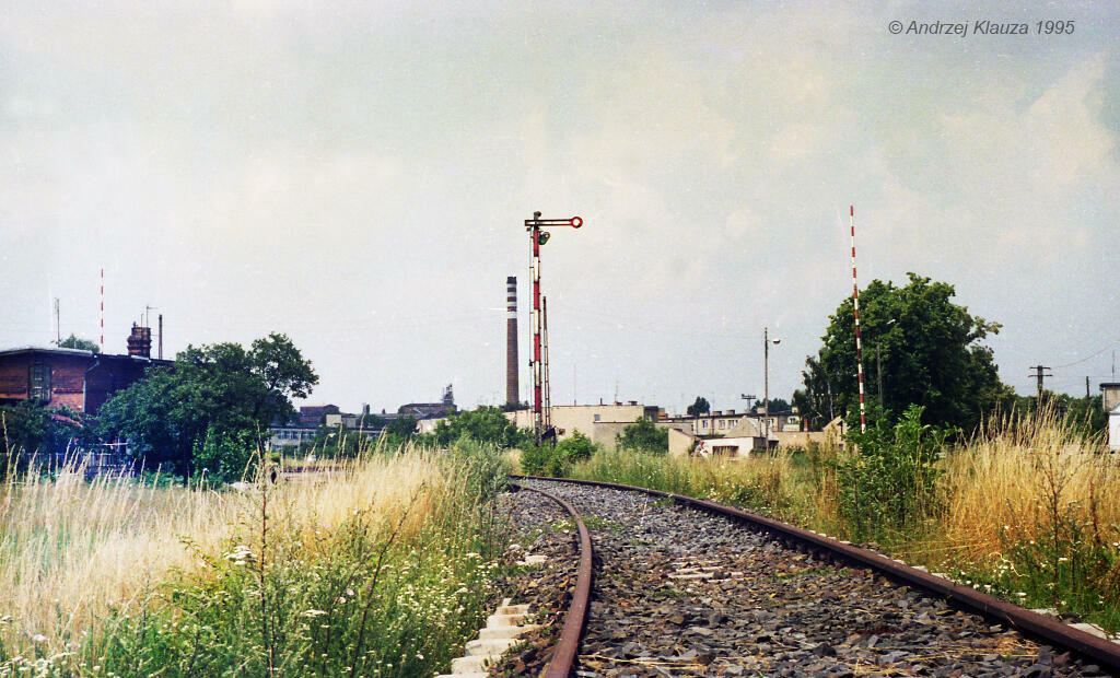 Wjazd do Gostynia od strony Krobi. Widoczny nieczynny tor, choć po wykonanym remoncie (betonowe podkłady i czysty tłuczeń). Semafor wjazdowy jednoramienny umożliwiał podanie sygnału zezwalającego na wjazd tylko wprost na tor nr 2, przy peronie pierwszym.