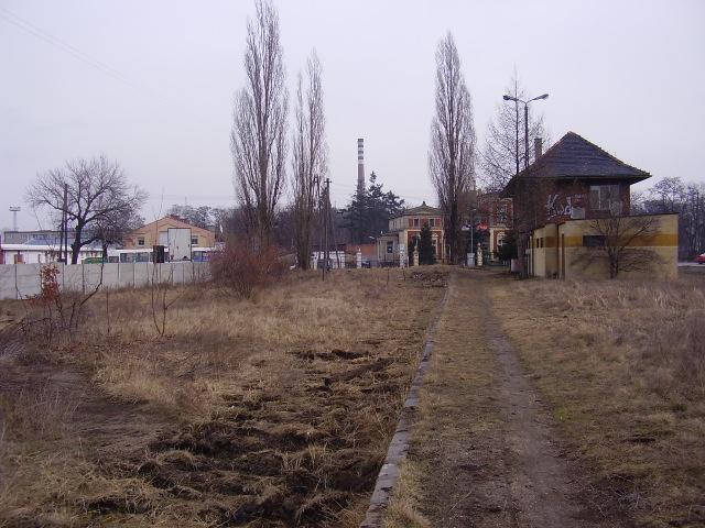 Peron tzw."kościanki". Niestety, przy tym peronie żadna maszyna już nie stanie. Szyny, zwrotnice i podkłady usunięte, został tylko fragment toru po lewej stronie. Z prawej nastawnia dysponująca Gs. Widok w kierunku wschodnim, od strony wjazdów z Kąkolewa/Leszna i Kościana.