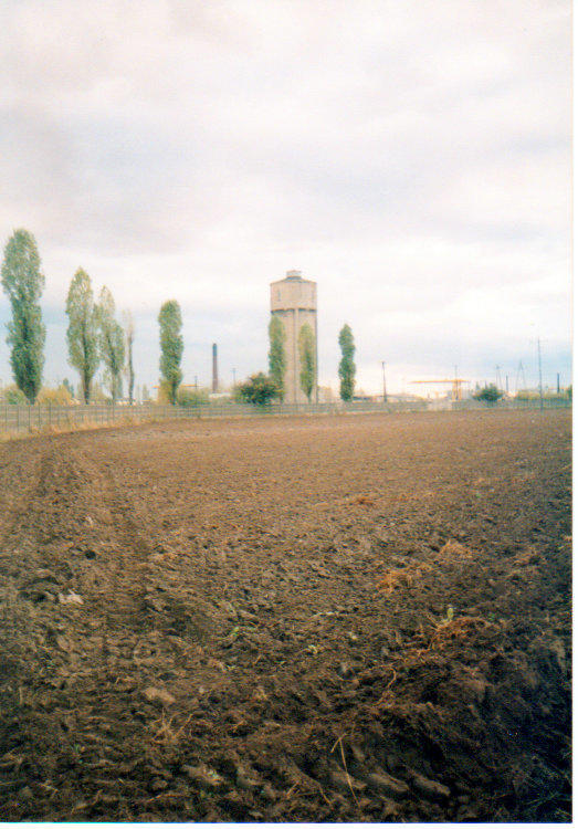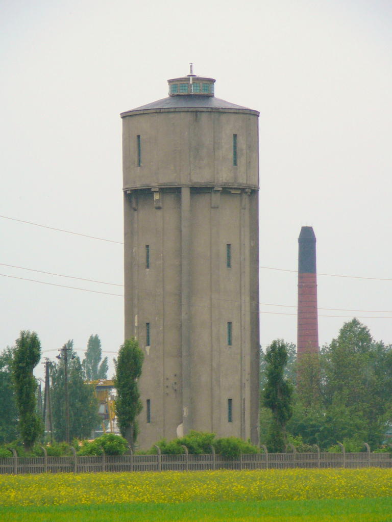 Koźmin. Wieża wodna na terenie nasycalni podkładów.Widok z ul. Towarowej.