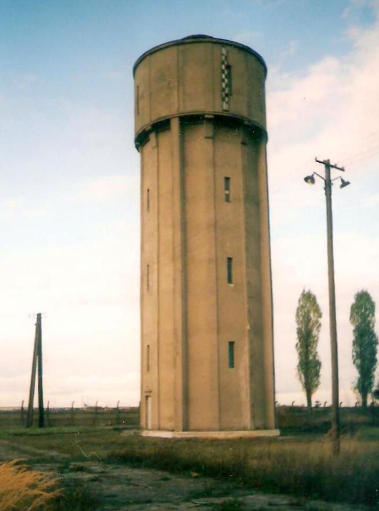 Koźmin. Wieża wodna na terenie nasycalni podkładów.