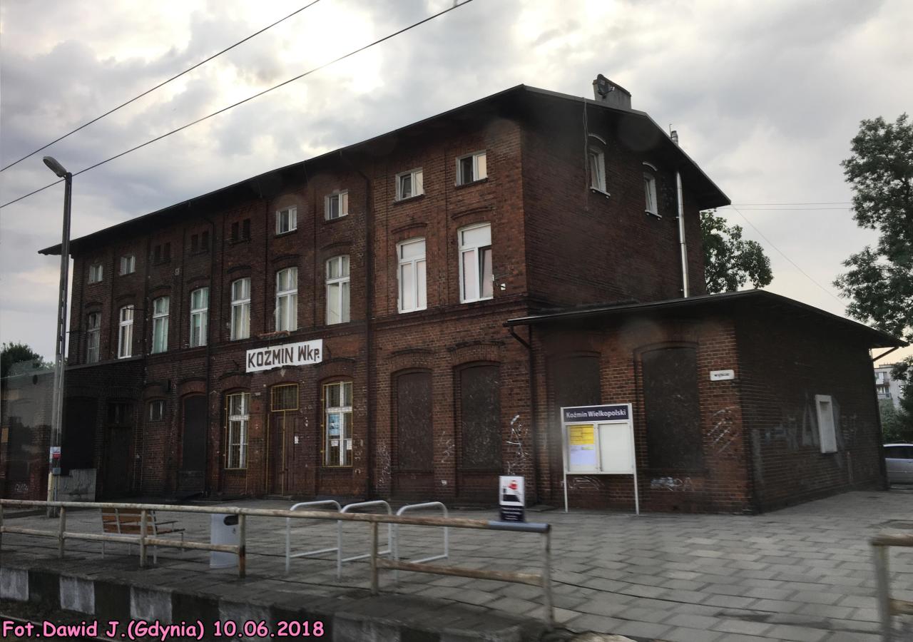 Budynek dworcowy widoczny od strony torów.: w lewo Jarocin Chojnice, w prawo Krotoszyn i (dawniej) Piaski Wielkopolskie/Gostyń.