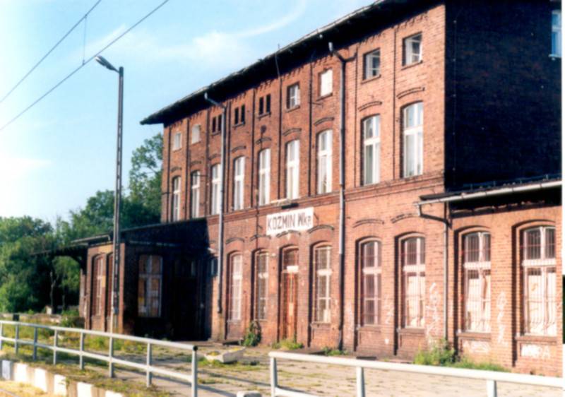 Budynek dworca od strony peronów i wjazdów z Krotoszyna i Piasków Wielkopolskich/Gostynia. Widok w kierunku północno-wschodnim, od strony wjazdów z Krotoszyna i (dawniej) Piasków Wielkopolskich/Gostynia.