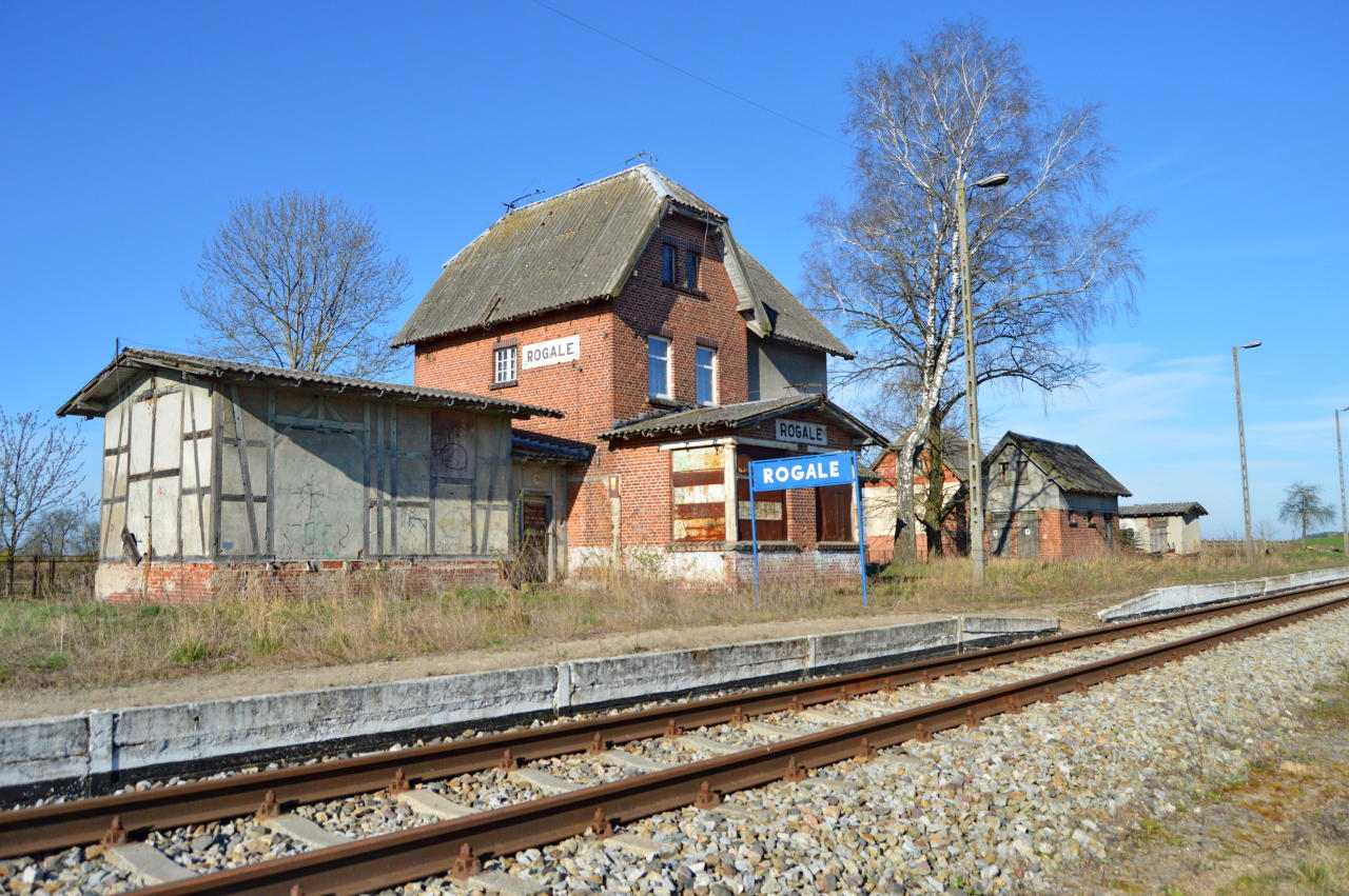 Nieczynny przystanek osobowy Rogale. Stan obecny 24.04.2015 r.