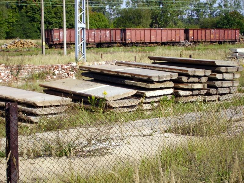 Składowisko płyt przejazdowych w miejscu, gdzie była czterostanowiskowa parowozownia.