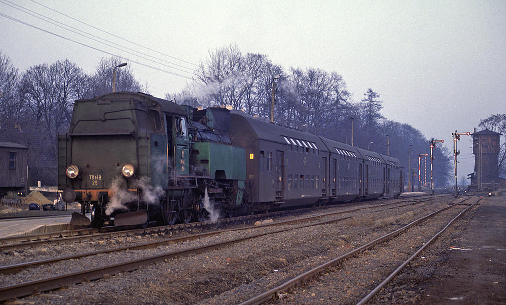 TKt48 z Bipą na haku jako popołudniowy pociąg osobowy Kępno - Oleśnica stoi w peronach stacji Syców. Widok w kierunku wschodnim (Kępno, kiedyś Bukowa Śląska).