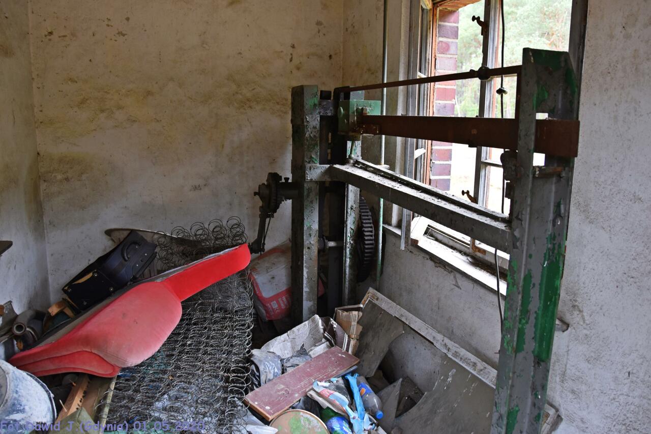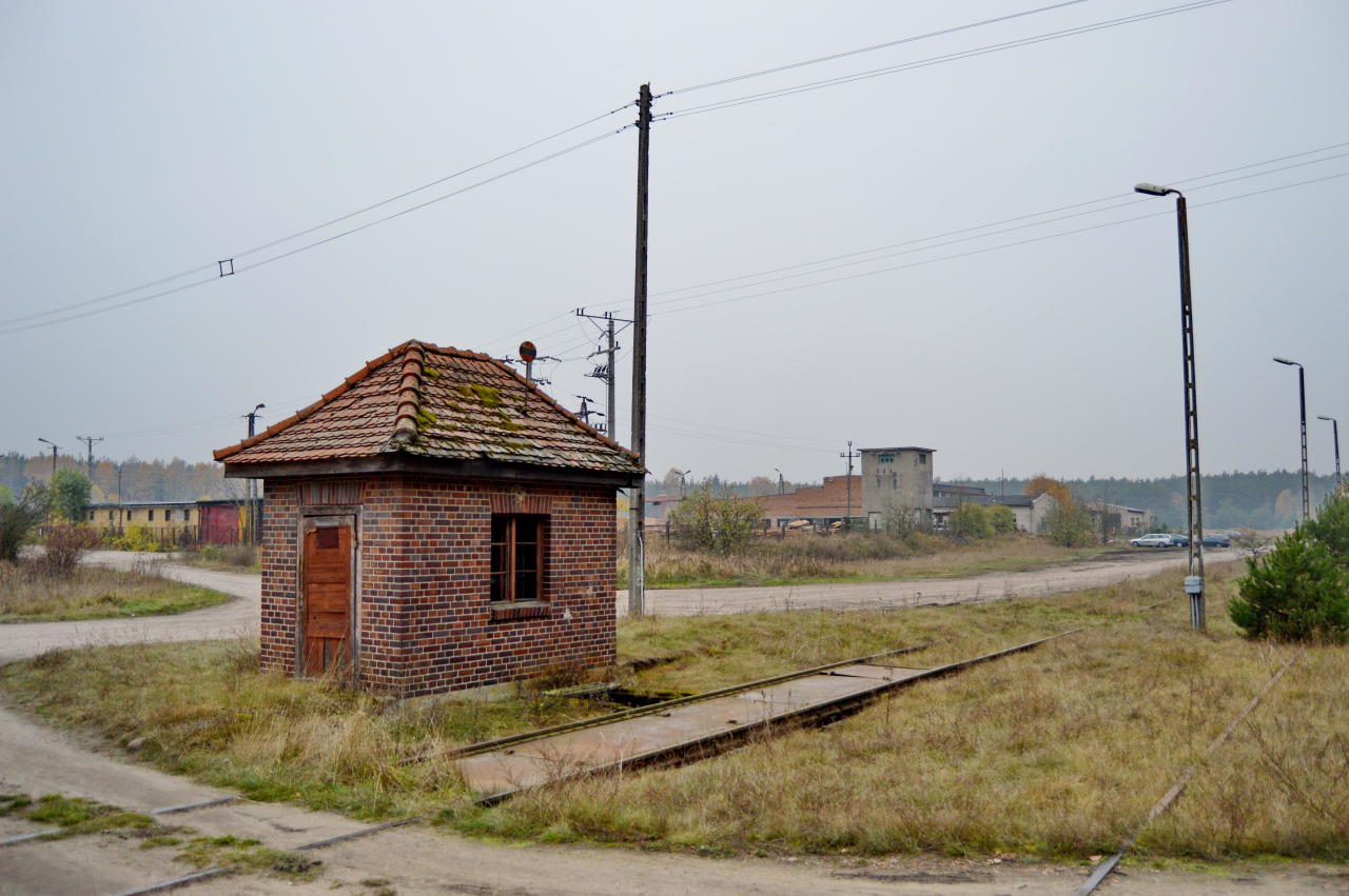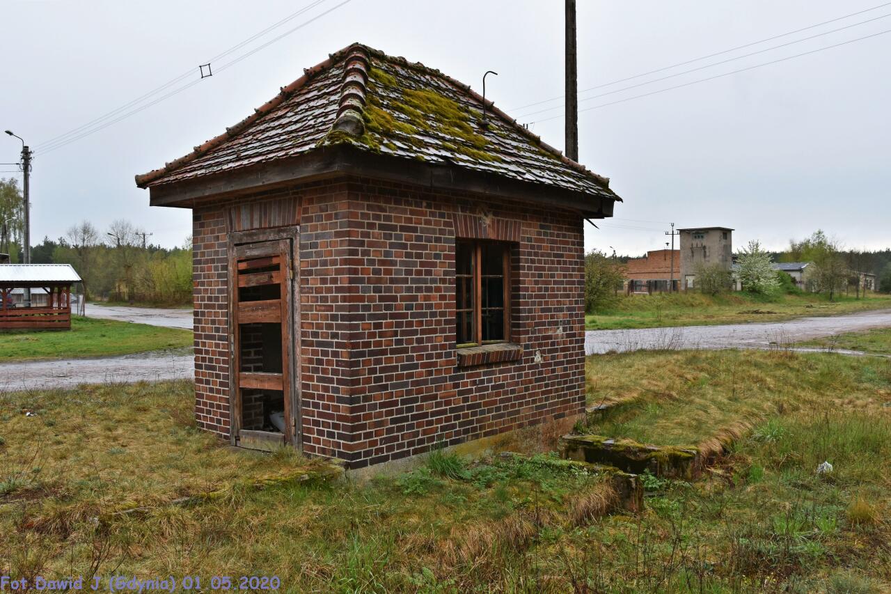 Budynek wagi widoczny od strony miejsca w którym kiedyś znajdowały się tory. Widok w kierunku Pruszcza Bagienicy/Złotowa.