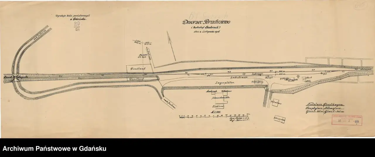 Plan stacji Bruchniewo z listopada 1916 r. Materiał zasobów Archiwum Państwowego w Gdańsku.