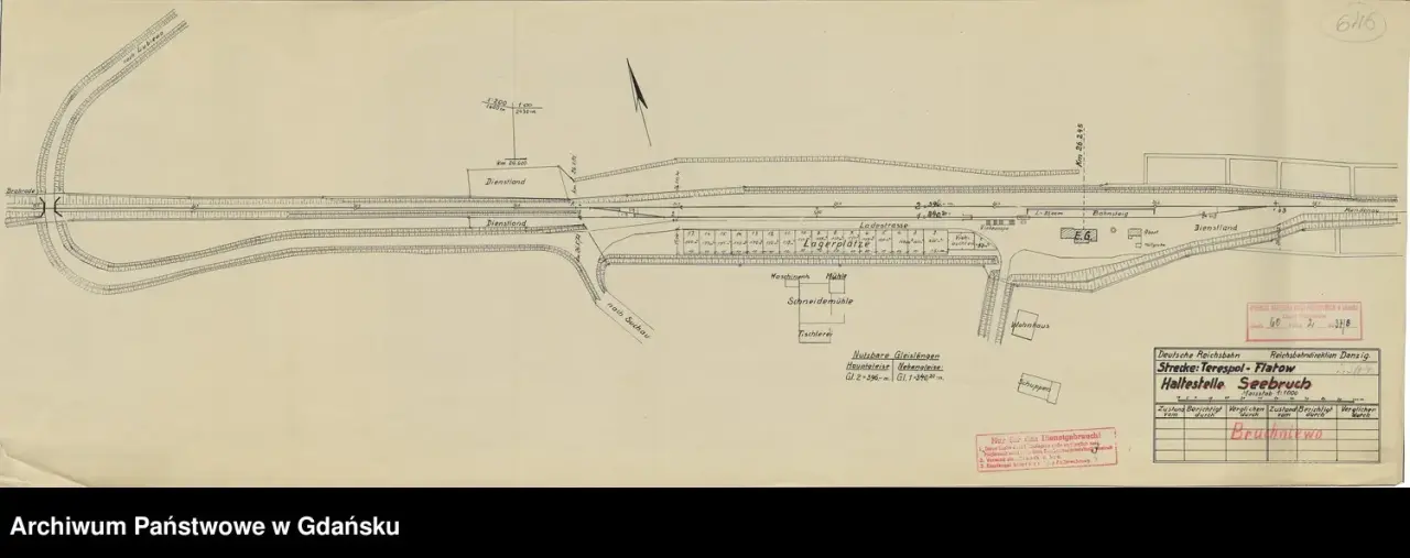 Plan stacji Bruchniewo, lata czterdzieste. Materiał zasobów Archiwum Państwowego w Gdańsku.
