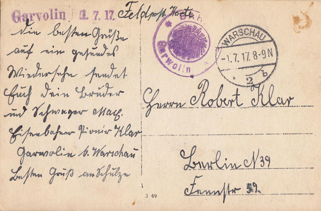 Pocztówka wysłana 1.7.1917.