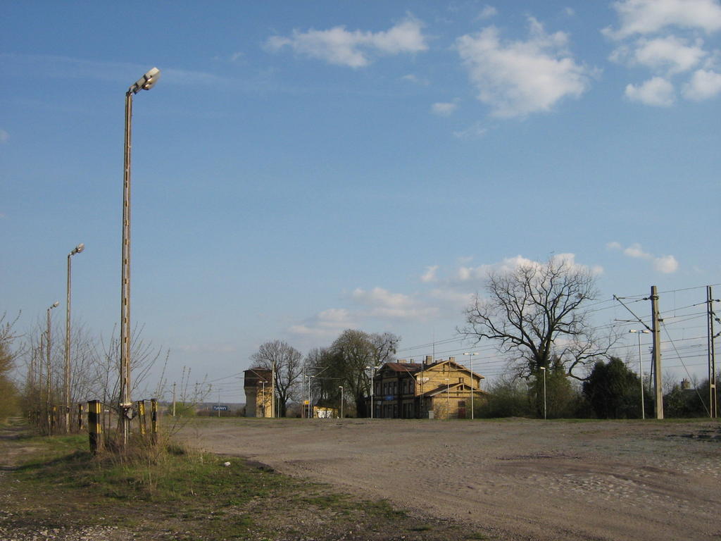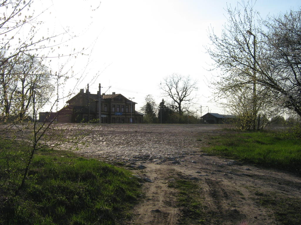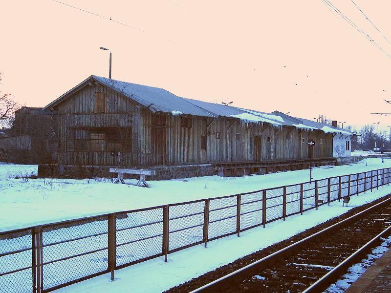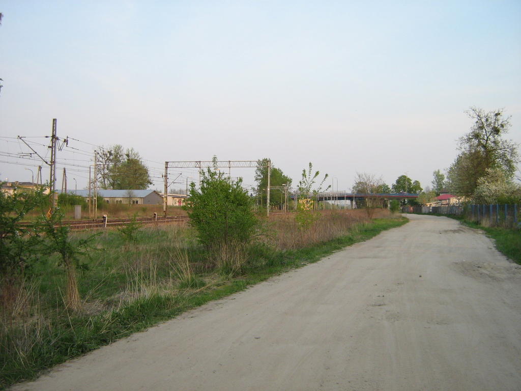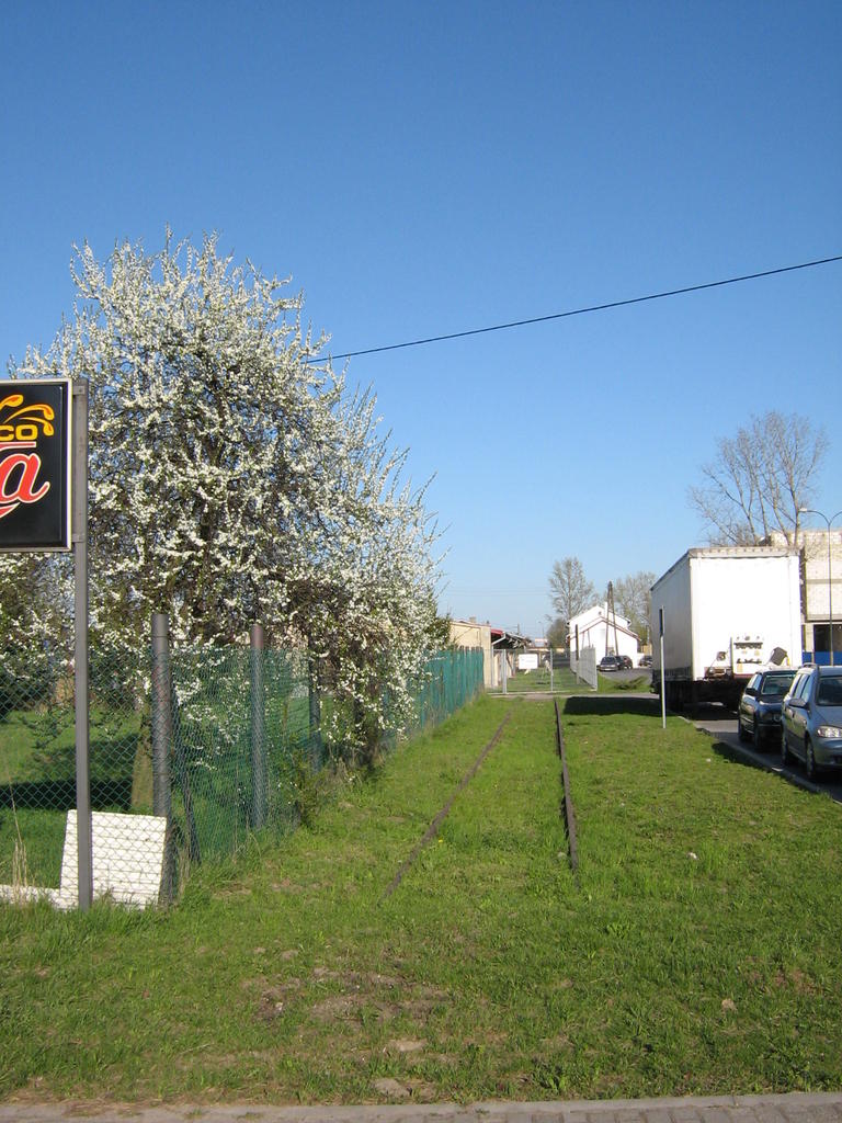 Najdalej od stacji wysunięty odcinek toru urywa się około 150 metrów od torów głównych, w miejscu widocznym na zdjęciu. Obsługiwał magazyny, które do dziś jeszcze stoją (widoczne dalej po lewej stronie). Niegdyś tor biegł dalej w stronę zakładu drzewnego. Obecnie na jego drodze stoi stacja kontroli pojazdów. Na torze tym pamiętam parowóz pod koniec lat 80-tych. Niestety nie miałem wtedy aparatu…