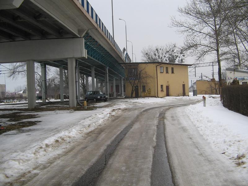 Tym razem widok budynku dworcowego z wjazdu na plac ładunkowy, zlokalizowany po przeciwnej stronie torów: w prawo Dęblin, w lewo Lublin.