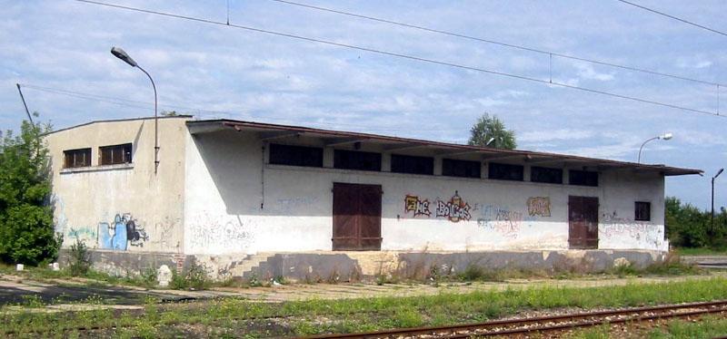 Budynek gospodarczy zlokalizowany obok dworca.