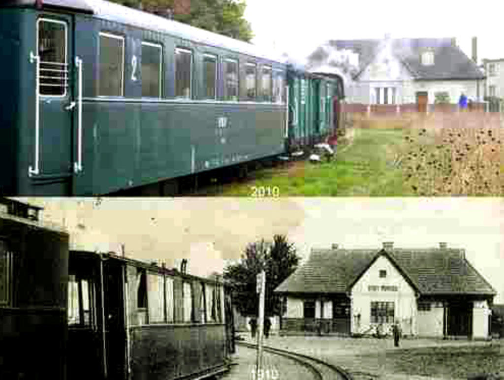 Wizerunek dworca w Powidzu sprzed roku i - dla porównania - sprzed stu lat.