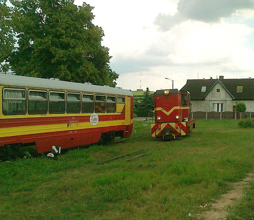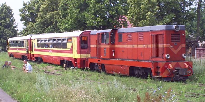 Lokomotywa Lxd2-313 na czele składu turystycznego, jadącego z Gniezna do Anastazewa.