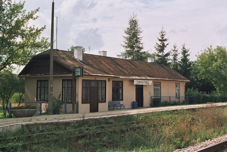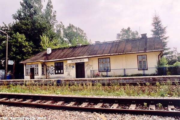 Zwierzyniec. Budynek dworca od strony peronu i wjazdu ze Zwierzyńca Towarowego.