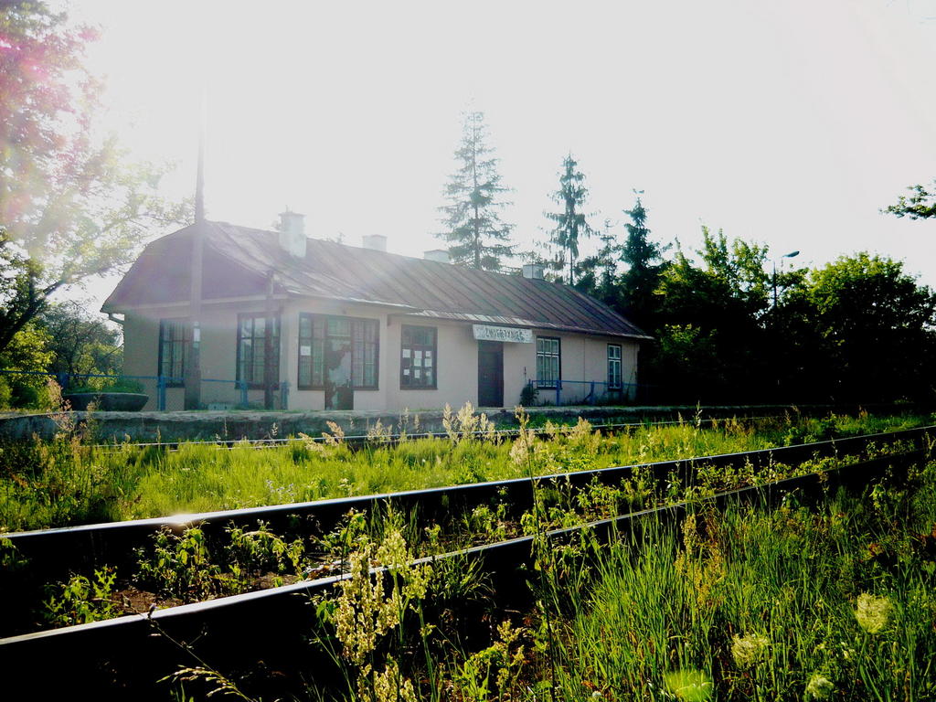 Budynek dworca od strony peronu i wjazdu z Zawady/Zamościa.