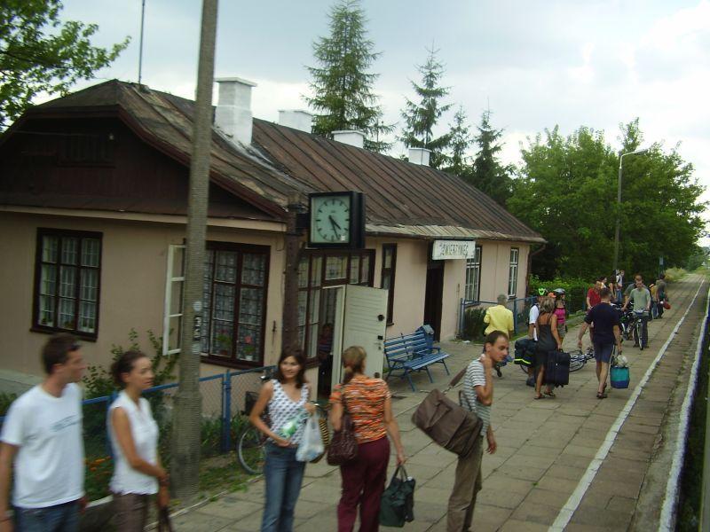Budynek dworca od strony peronu; w lewo Zwierzyniec Towarowy, w prawo Zawada/Zamość.