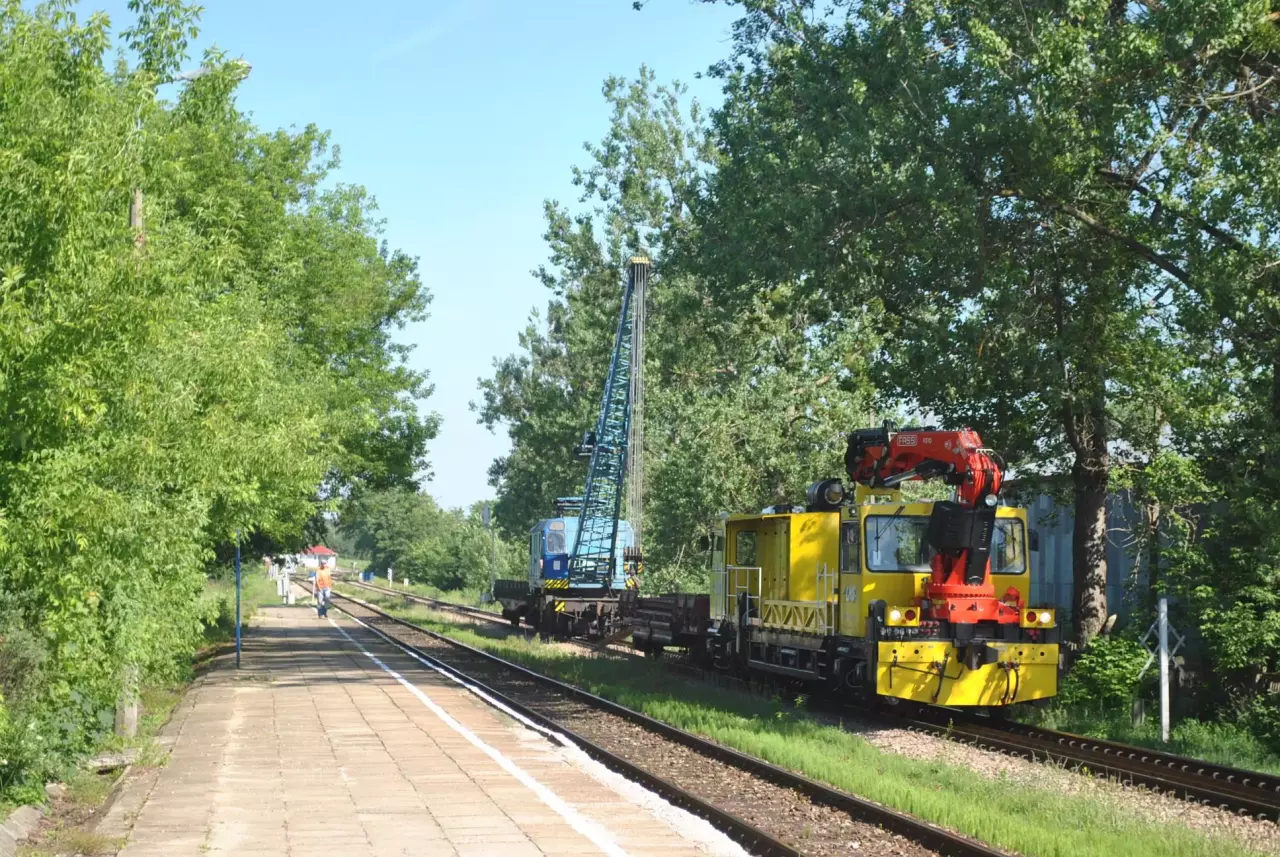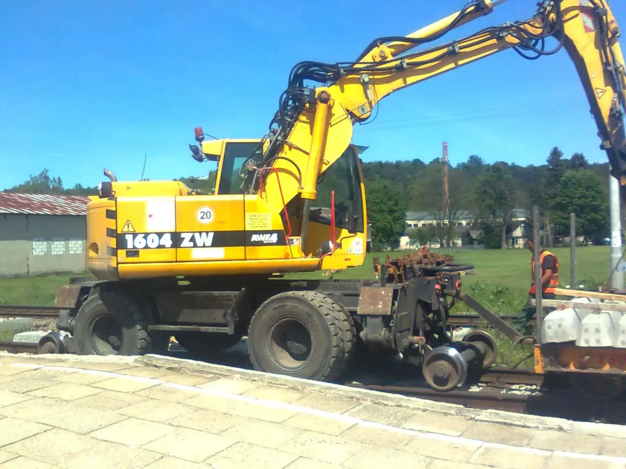 Koparka drogowo-torowa na przystanku Zwierzyniec. W lewo Zawada/Zamość, w prawo Zwierzyniec Towarowy.