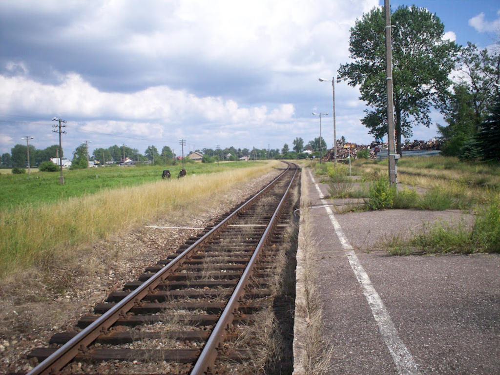 Widok na zarośnięte perony w kierunku Olecka.