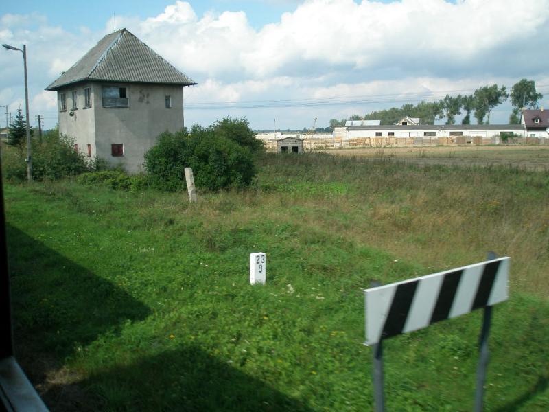 Widok na nastawnie wykonawczą od strony Suwałk z pociągu pośpiesznego Biebrza z Suwałk do Gdyni. Jest to pierwszy planowy pociąg pasażerski na tej linii, na której ruch pasażerski był zawieszony. Niestety, pociąg ten został uruchomiony tylko na okres wakacyjny i będzie jeździć tylko do 3 września 2006 r.
