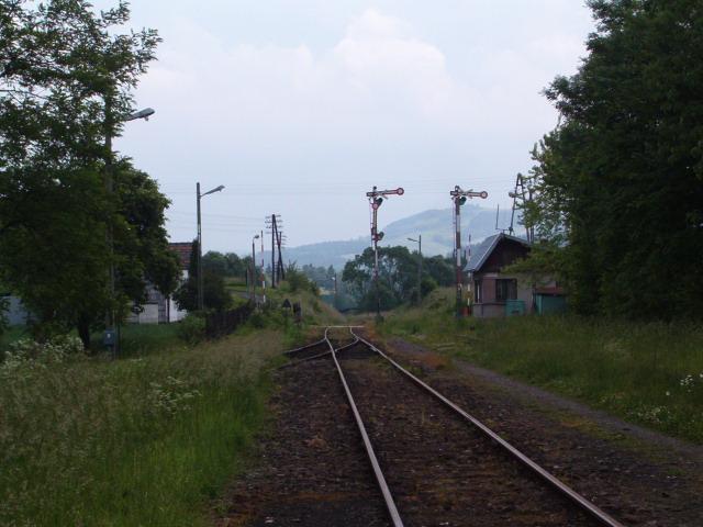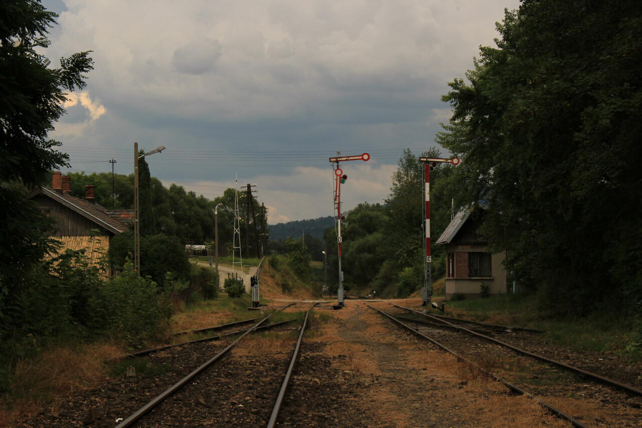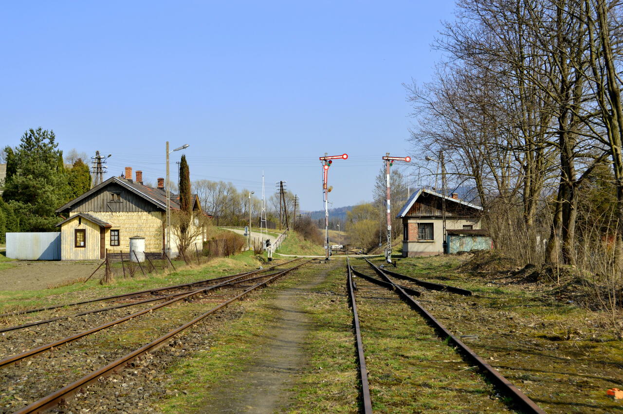 Rabka Zaryte. Widok w kierunku Nowego Sącza. W oddali budynek nastawni "RZ".