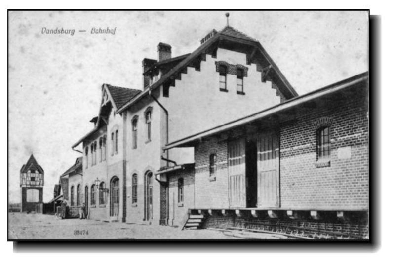 Dworzec i stacja PKP w Więcborku rok 1906 lub później. W tym czasie z Więcborka jeździły pociągi do Warszawy, Berlina, Gdańska, Poznania, Krakowa. Widok w kierunku północno-wschodnim (Chojnice, Złotów).