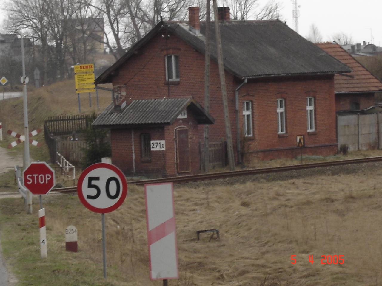 Strażnica przejazdowa w Więcborku. Skrzyżowanie z DW 271, na wjeździe lk 281 z Chojnic (z lewej). Widok w kierunku południowym; w prawo perony.