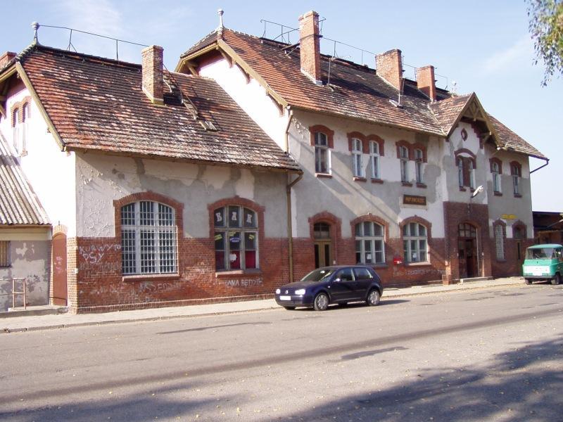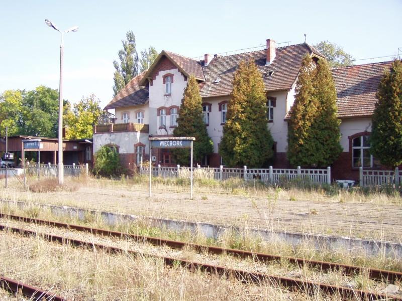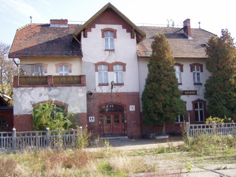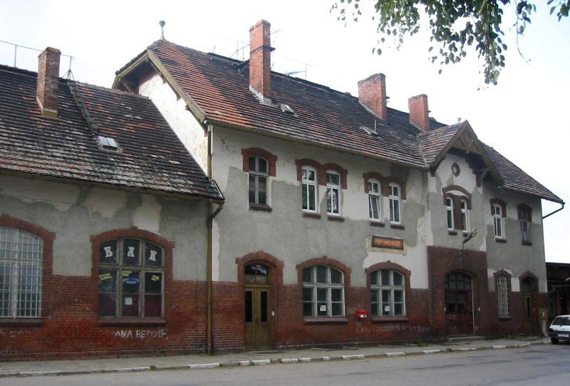 PKP Więcbork. Budynek dworcowy. Widok od strony miasta. Pierwsze piętro pełni funkcję budynku mieszkalnego.