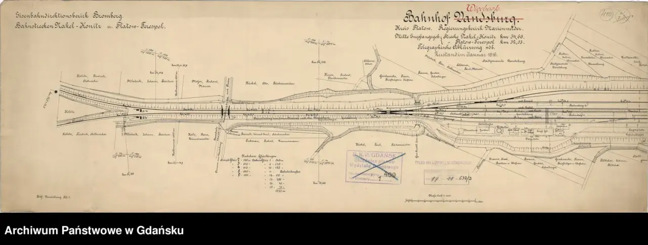 Plan części stacji Więcbork. Stan na styczeń 1916 r. Materiał zasobów Archiwum Państwowego w Gdańsku.