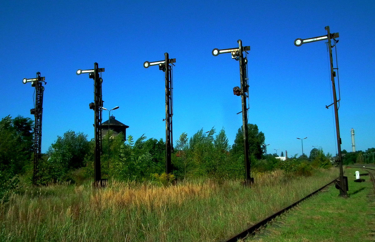 Semafory wyjazdowe w stronę Pietrowic Wielkich/Raciborza, Pilszcza. Widok w kierunku północno-zachodnim, od strony wjazdów z Pietrowic Wielkich/Raciborza i Pilszcza (dawniej z Opawy).