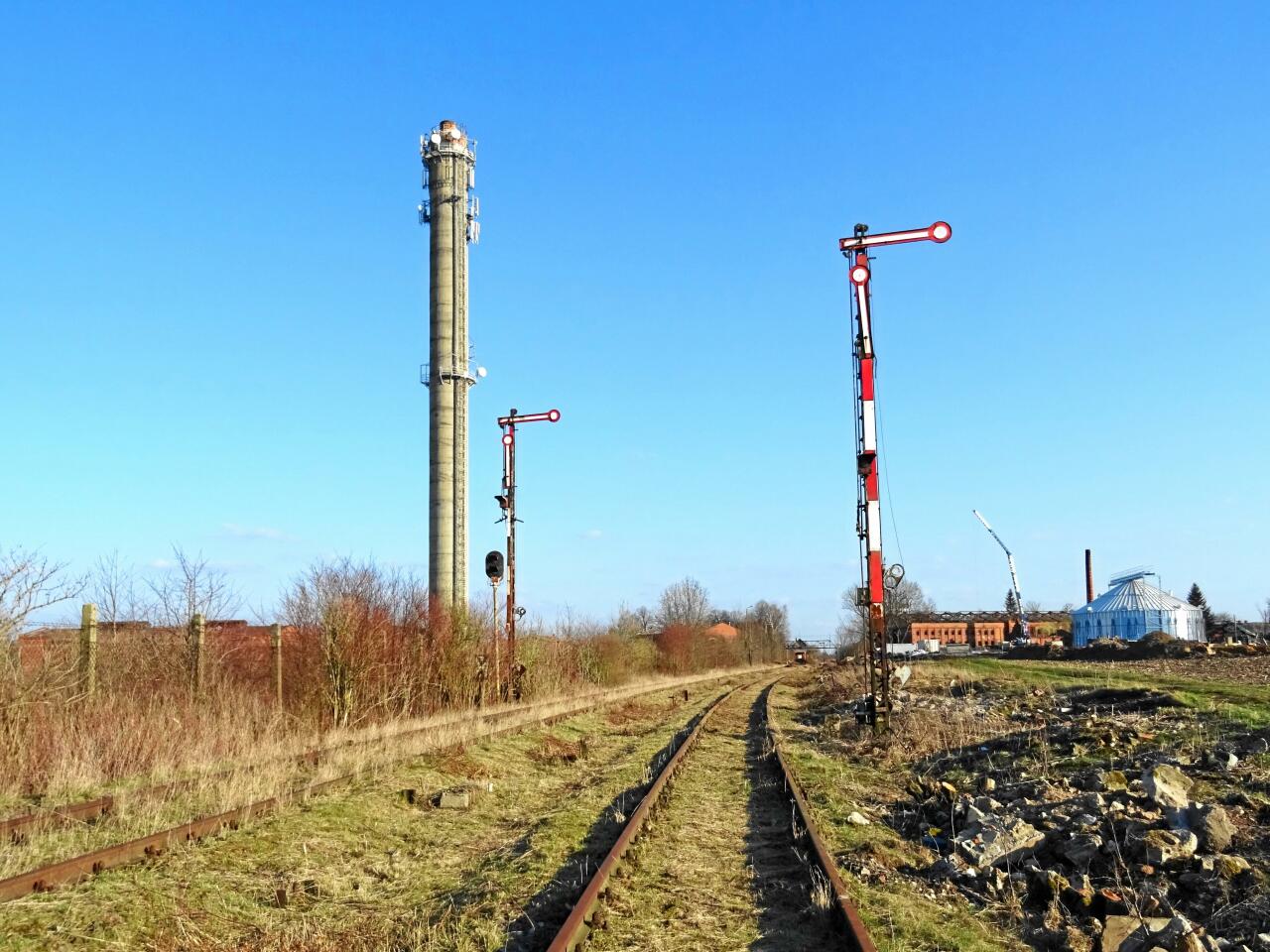 Semafory wjazdowe na stację Baborów - po lewej linia 177 Racibórz - Pietrowice Głubczyckie - Krnov, po prawej linia 195 Kędzierzyn Koźle Zachodnie - Baborów. Z lewej komin pozostały po zlikwidowanej Cukrowni Baborów.