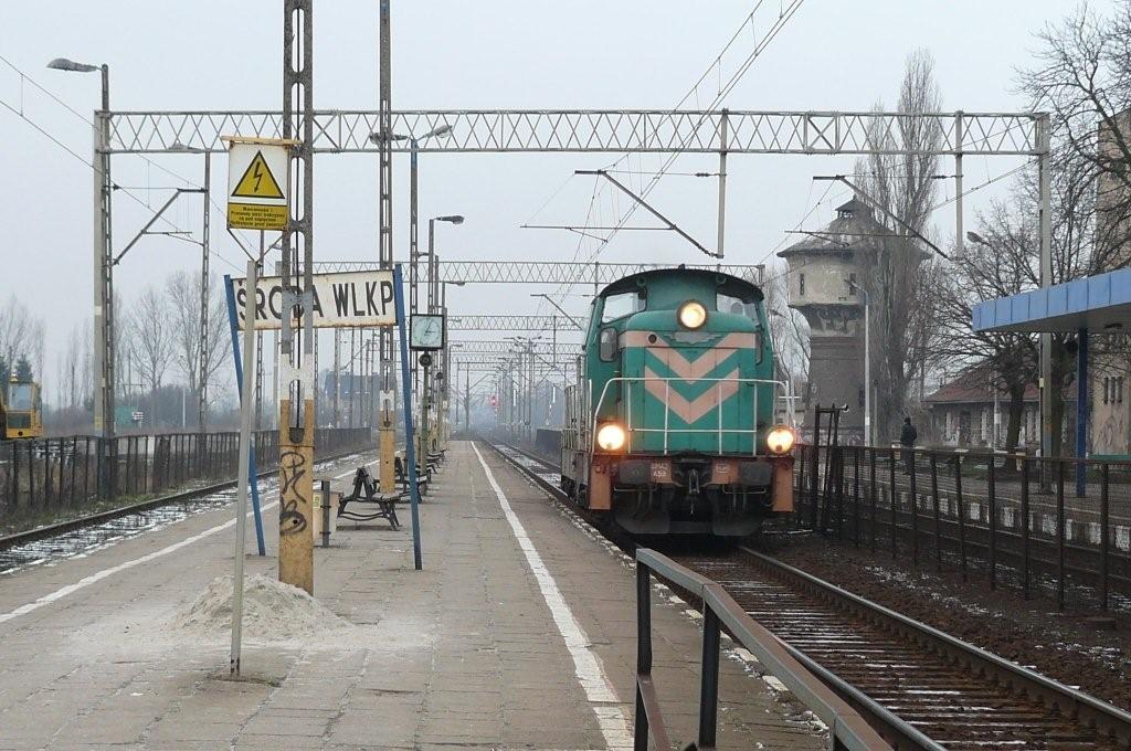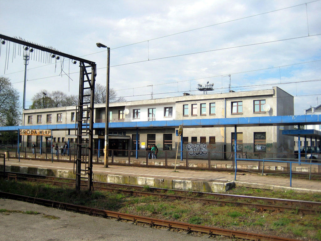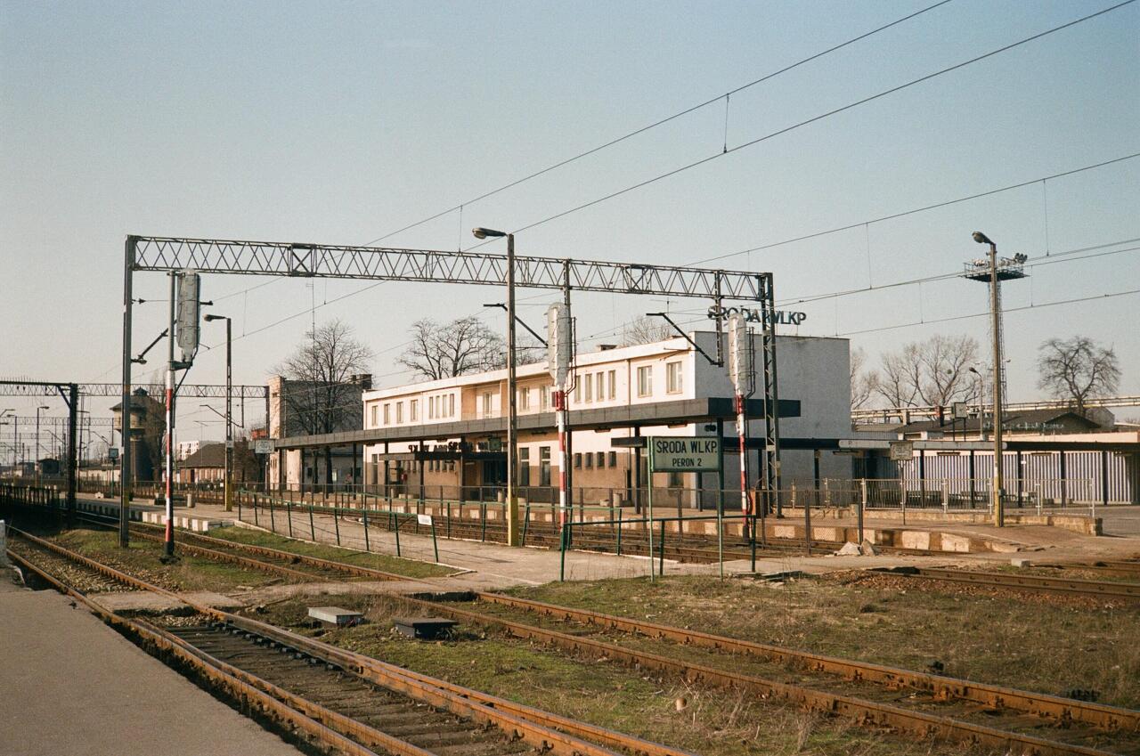 Środa Wielkopolska. Na peron pierwszy wychodzi się bezpośrednio z budynku stacyjnego. Z tego peronu odjeżdżają pociągi w kierunku Poznania. W tym właśnie kierunku zostało zrobione zdjęcie.