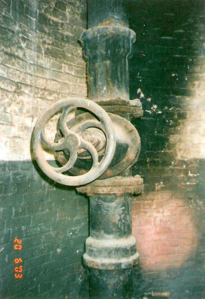Zachowany zawór w wieży wodnej.