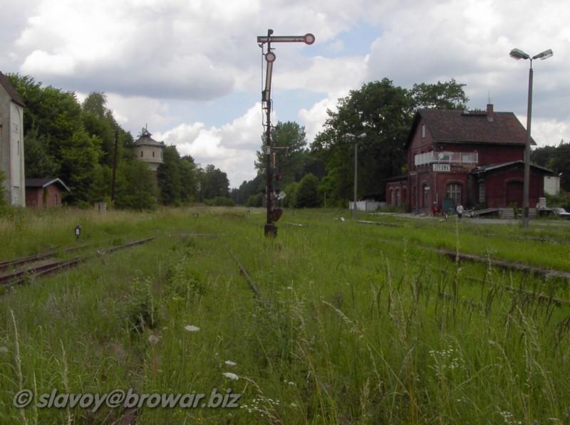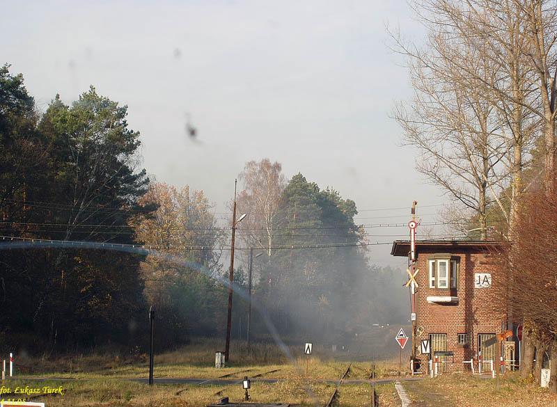 Jełowa jeszcze z pociągu planowego, w moje urodziny. W tle budynek dworca z przybudówką nastawni. Na horyzoncie nastawnia wykonawcza. Widok od strony Opola.