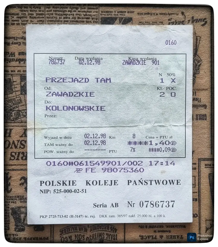 Bilet blankietowy wydany na stacji Zawadzkie.