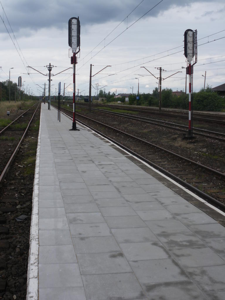 Nowy peron koło nieużywanych torów. Widok w kierunku północnym (Chorzew Siemkowice).