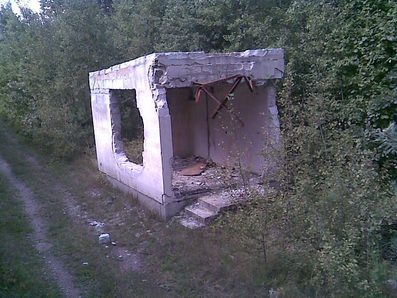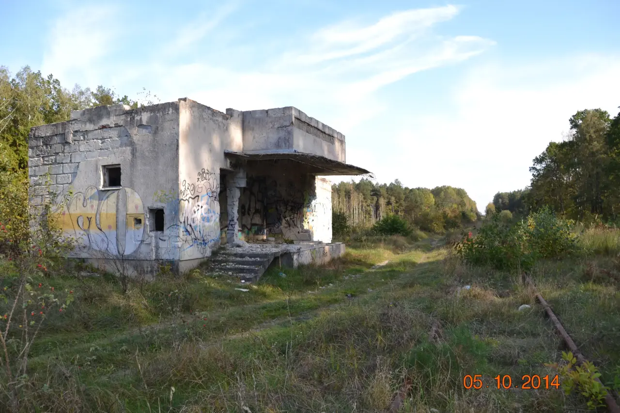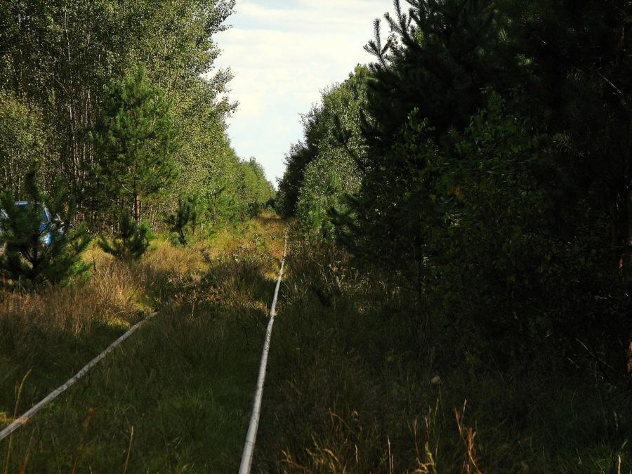 Ruiny południowo – wschodniej nastawni stacji Kownatki. Widok w kierunku dawnego posterunku odgałęźnego Zapowiednik i Łukowa.